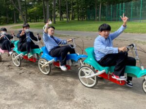 2022年9月29日 第2学年 修学旅行速報(ノーザンホースパーク) 無事に北海道・新千歳空港に到着した修学旅行生一行が訪れたのは「ノーザンホースパーク」です。 昼食をとり、13:30までパーク内を自由散策しています。 【今後の行程】 時 分 行程 13 30 ノーザンホースパーク出発 16 30 フラワーランド上富良野到着 17 15 フラワーランド上富良野出発 19 00 サホロリゾート到着