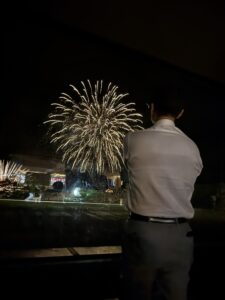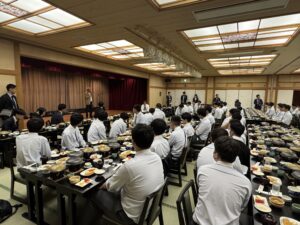 2025年9月24日 【修学旅行速報#3】洞爺観光ホテル エスコンフィールド北海道から洞爺観光ホテルに移動しました。 到着後は、洞爺湖を背景に集合写真を撮影し、ホテル周辺の自由散策を行いました。その後、全員で夕食をいただきました。 20時からは洞爺湖の花火大会があり、生徒たちは美しい花火を楽しそうに鑑賞していました。