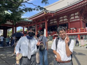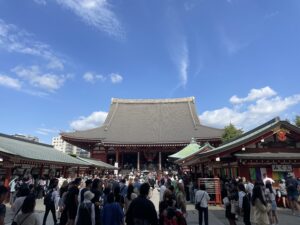 2025年9月27日 【修学旅行速報#9】浅草寺 浦安ブライトンホテル東京ベイを出発した後、浅草寺を訪れました。 生徒は、雷門や仲見世通りを散策し、歴史を感じる街並みや活気ある雰囲気を楽しみました。 浅草寺ならではのグルメやお土産など、充実したひとときを過ごしました。 現在は、新幹線に乗って大阪に向かっています。