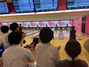 午前は1年生。初めてボウリングをする生徒もおり,苦戦する姿も見られました。