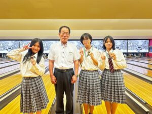 午後は3年生。高校生活最後のボウリング大会を大いに楽しんでいました。