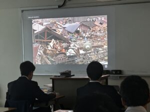 東日本大震災や阪神・淡路大震災に関する映像を視聴し、災害の実情や教訓について学び、レポート作成に取り組みました。
