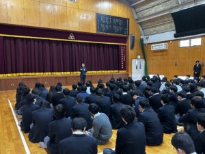 2026年1月30日 2学年 進路講演会 1月30(金)、6限目のLHR時に進路講演会を実施し、株式会社バンズカンパニー代表取締役社長の竹下しんいちさんに登壇していただきました。 舞台の脚本を書かれたり、某有名俳優の付き人をされた経験から、生徒たちがこれからの進路活動を進めていく上で必要な、「やる気の出し方」や「話を聞くことの重要性」など、夢の実現に不可欠なコツや心構えについて熱く語っていただきました。 2学年の生徒たちは、進級後の進路活動を良い形でスタートさせるためのヒントを得ることができました。