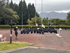 2026年4月25日 1学年 宿泊研修③ 4月25日(土)、1学年団は6:00に起床し、7:00より「朝のつどい」を行いました。 今朝の曽爾高原は、風が強く、大阪と比べると気温も低いです。 現在、2グループに分かれて朝食をとっている最中です。 この後、9:30から集団行動のオリエンテーションを行います。